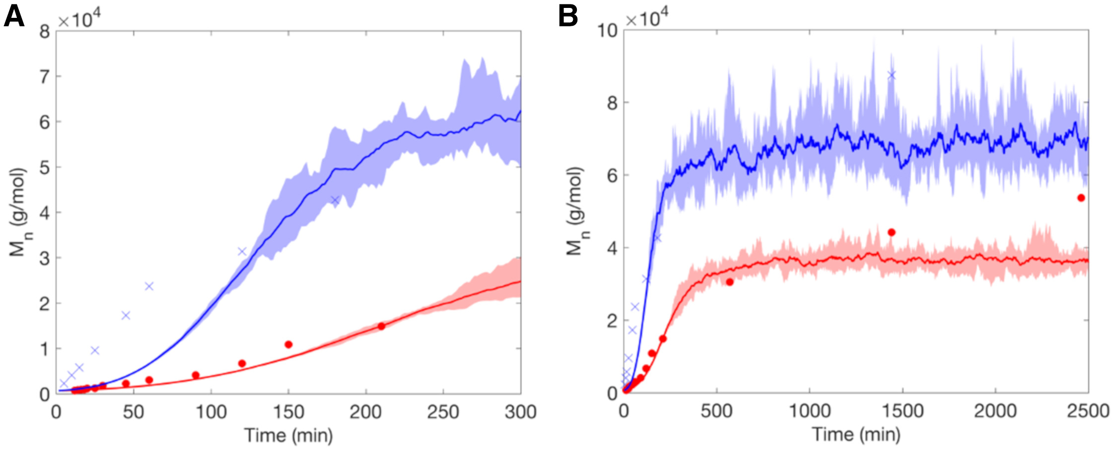 In this work, we use density functional theory calculations together with kinetic Monte Carlo modeling to capture the full structural development during reversible polymerization, elucidate the complex interplay between step-growth and chain-growth polymerization reactions over the course of the reaction, and identify the influence of non-reactive, catalyst-binding complexes on the reaction kinetics.